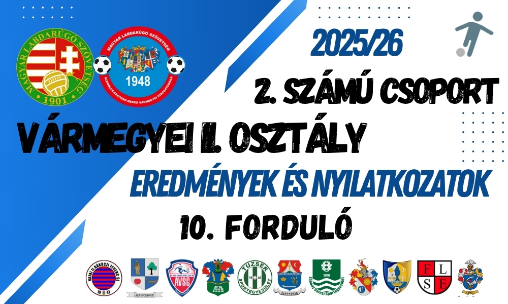 Vármegyei II. osztály 1. sz. csoport 10. forduló. Eredmények és nyilatkozatok 2025.10.26. 16:05 Bővebben »