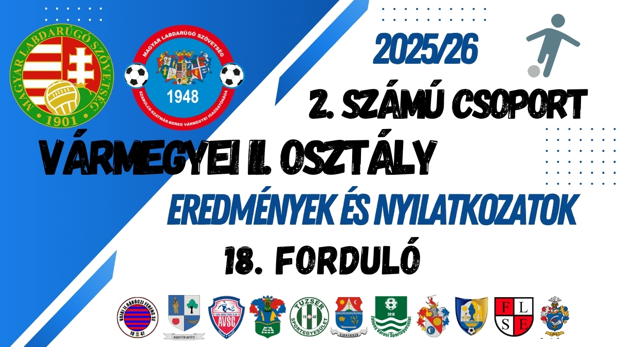 Vármegyei II. osztály 2. sz. csoport 18. forduló. Eredmények és nyilatkozatok 2026.04.18. 19:23 Bővebben »