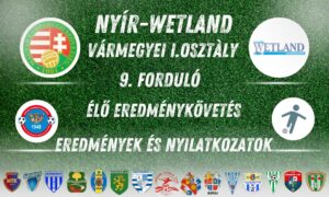 Élő eredménykövetés Nyír-Wetland Vármegyei I. osztály 9. forduló A piros színű eredmények részeredmények. Az adatok tájékoztató jellegűek. 2025. október 4. szombat 15:00 Tiszavasvári