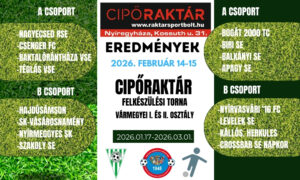 Cipőraktár Kupa hétvégi eredmények 2026.02.13. Cipőraktár Kupa (Nyírbátor) Az adatok tájékoztató jellegűek. 2026. február 14. Kezdés: 12:00 S.K. Vásárosnamény Téglás VSE – – Elmaradt. Téglás nem Tovább olvasom »