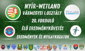 Élő eredménykövetés Nyír-Wetland Vármegyei I. osztály 20. forduló A piros színű eredmények részeredmények. Az adatok tájékoztató jellegűek. 2026. május 21. szombat 15:00