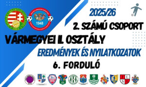Vármegyei II. osztály 3.sz. csoport 6. forduló Az adatok tájékoztató jellegűek. 2025. szeptember 27. szombat 14:00 Tisztaberek SE Őr KSE 5 1 gól: