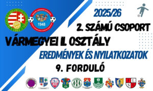 Vármegyei II. osztály 2.sz. csoport 9. forduló Az adatok tájékoztató jellegűek. 2025. október 19. vasárnap 14:00 Záhony VSE Jéke FC 2 6 gól:
