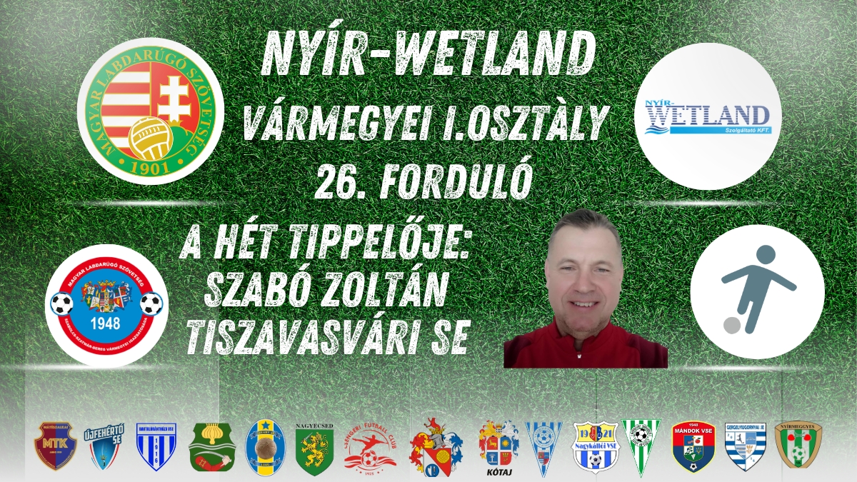 Különleges, elnyújtott játéknap vár a Nyír-Wetland Vármegyei I. osztály csapataira. Mivel a vármegyei amatőrválogatott Telkiben, a TAVONT négyes döntőjében küzd a történelmi aranyéremért, a 26. forduló mérkőzéseinek jelentős részét későbbi időpontokra halasztották. A rendhagyó menetrend és a foghíjas hétvége ellenére megszokott tippelő rovatunk nem marad el: ezúttal a bennmaradásért harcoló Tiszavasvári SE vezetőedzője, Szabó Zoltán vette górcső alá a párosításokat.