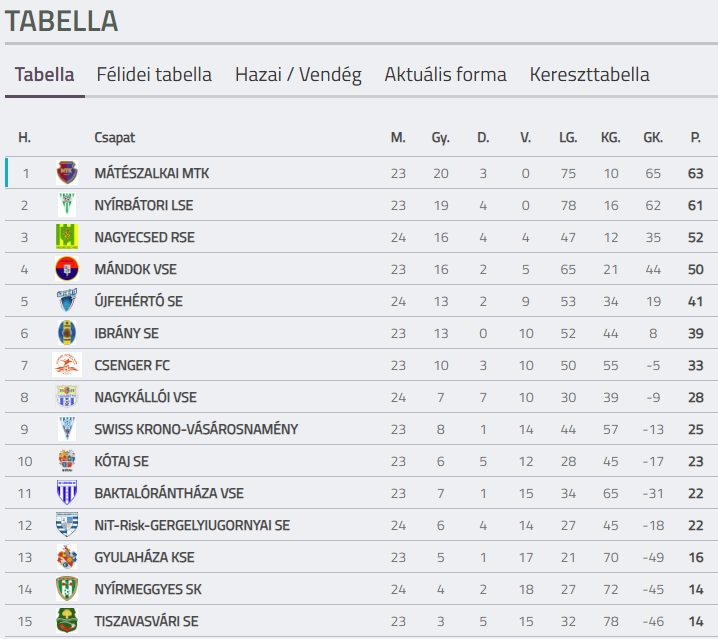 Mándok VSE (4.) – Nyírmeggyes SK (14.)