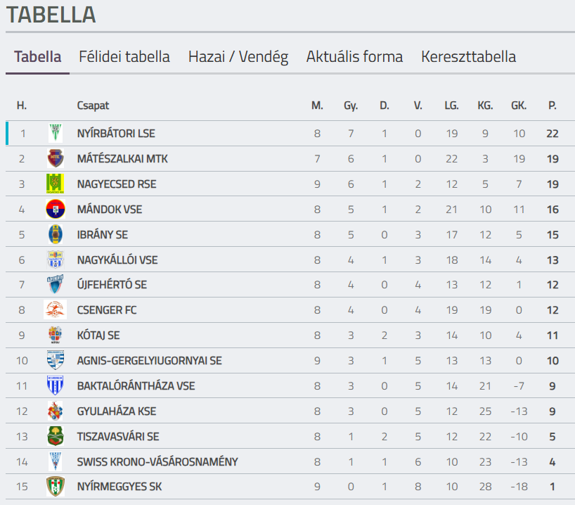 Újra ostromolják a Nagyecsedet, most Mándok próbál felkerülni a dobogóra. Hétvégén négy mérkőzést szombaton, hármat pedig vasárnap rendeznek. Nagyon fontos, hogy a meccsek már 14 órától kezdődnek. A 10. fordulóban Baktalórántháza a szabadnapos.