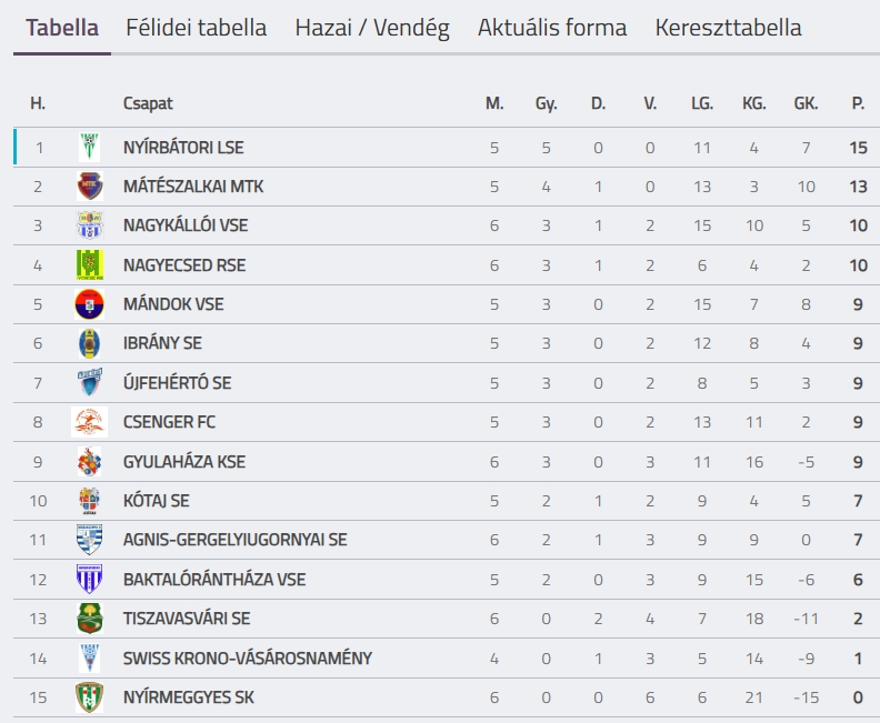Nyírmeggyes SK (15.) – Nagykállói VSE (3.)