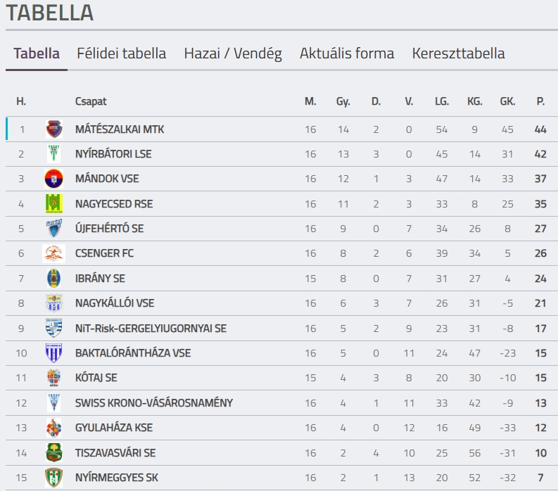 Nyírmeggyes SK (15.) – NiT-Risk-Gergelyiugornyai SE (9.)