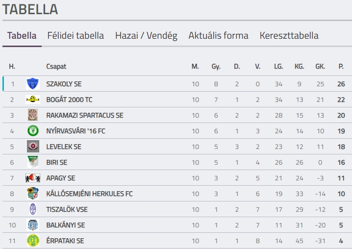 Az ősz egyértelműen a Szakoly SE csapatáról szólt. Tíz mérkőzésen nyolc győzelem és két döntetlen. A veretlenség önmagáért beszél. A siker receptje a félelmetes egyensúlyban rejlik: a Szakoly nemcsak a bajnokság (holtversenyben) legjobb támadósorát (34 lőtt gól) vonultatta fel, de messze a legjobb védelmét is (mindössze 9 kapott gól). A +25-ös gólkülönbségük dominanciát sugároz. Ez a teljesítmény óriási előrelépés a tavalyi (2024/25) szezonban elért 5. helyükhöz képest, ami a szakmai munka egyértelmű fejlődését mutatja. A siker egyik kulcsa a játékos-edző, Kovács Ádám személye. Az a fajta belső vezetés, ahol az edző maga is a pályán küzd és szerez gólokat – ahogy tette azt például a Nyírvasvári ellen, ahol duplázni tudott – felbecsülhetetlen értéket képvisel ebben az osztályban.